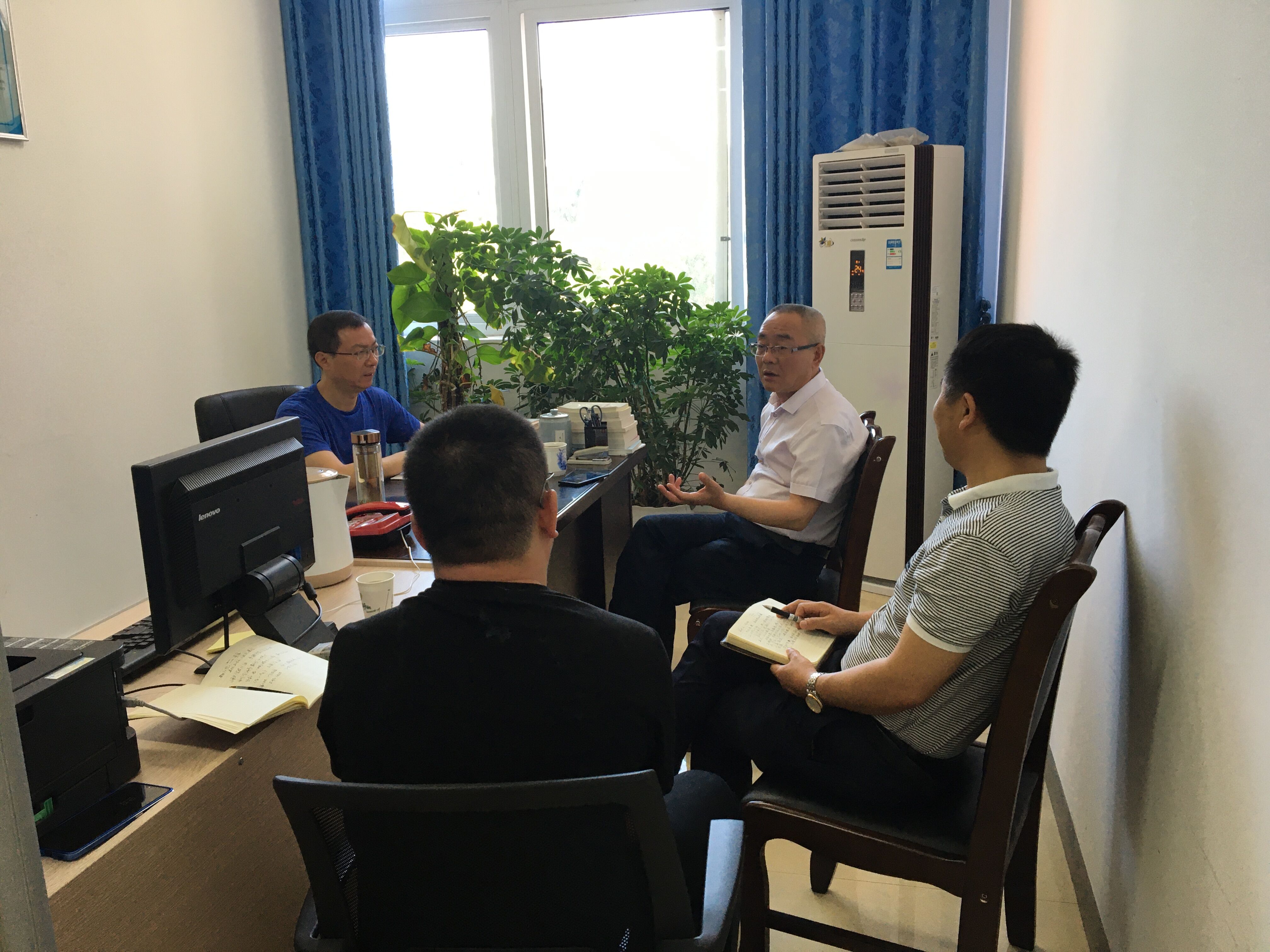 2020年6月9日上午9:40,公司党委书记张志远深入公司进行工作调研,公司党总支书记向泾源、经理王照安、副经理胡利超等参与座谈。会上,经理王照安就公司的学科竞赛、专业认证、团队队伍建设、公司十四五规划等方面作了汇报。