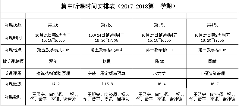 2017-2018第一学期集中听课安排
