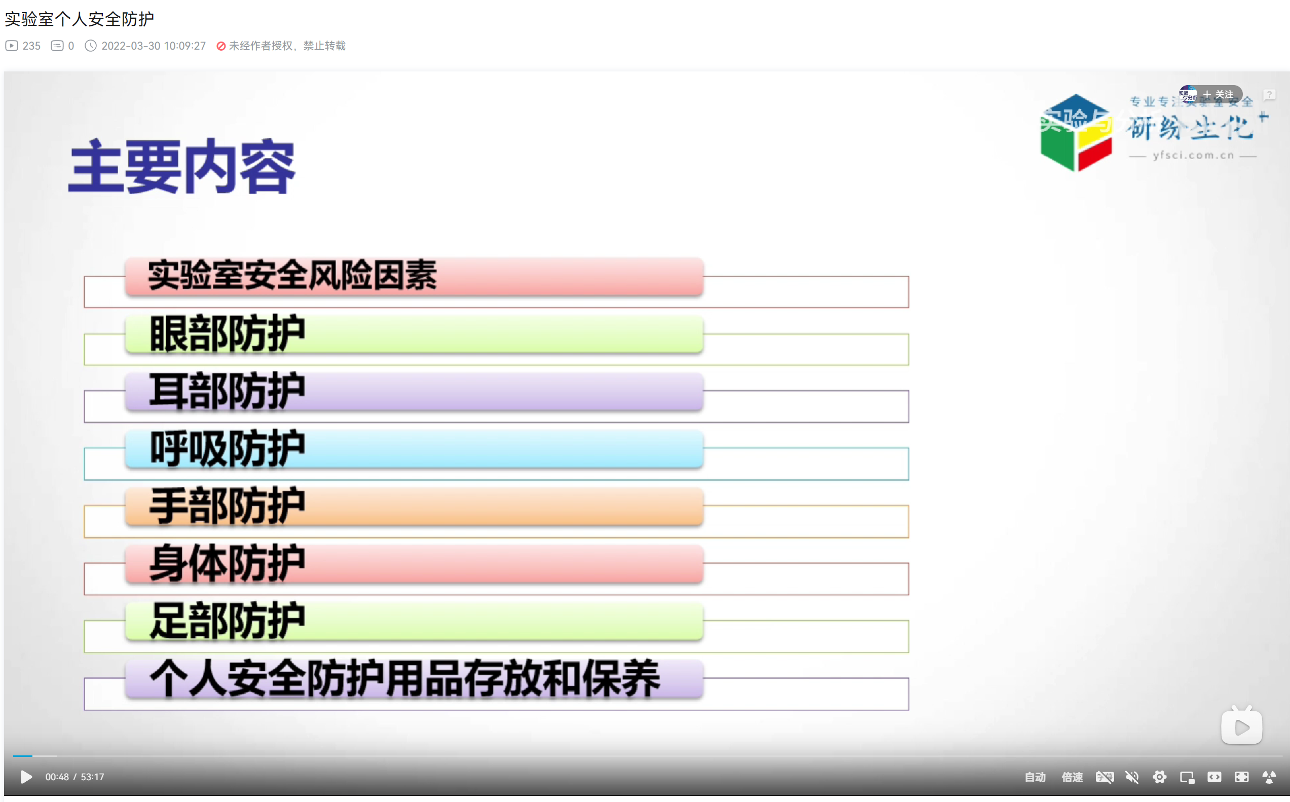 建筑工程公司于2022年04月22日在线上学习实验室安全知识。学习人员主要有实验室主任文泉霖,实验室管理人员王俊烨、罗剑、彭玉发等。此次学习的内容主要为实验室安全因素的分类与识别、实验人员的个人防护措施以及防护用品的存放与保养。通过此次学习增强了实验人员的自我保护意识,同时也为实验室安全事故的减少和防范打下坚实基础。