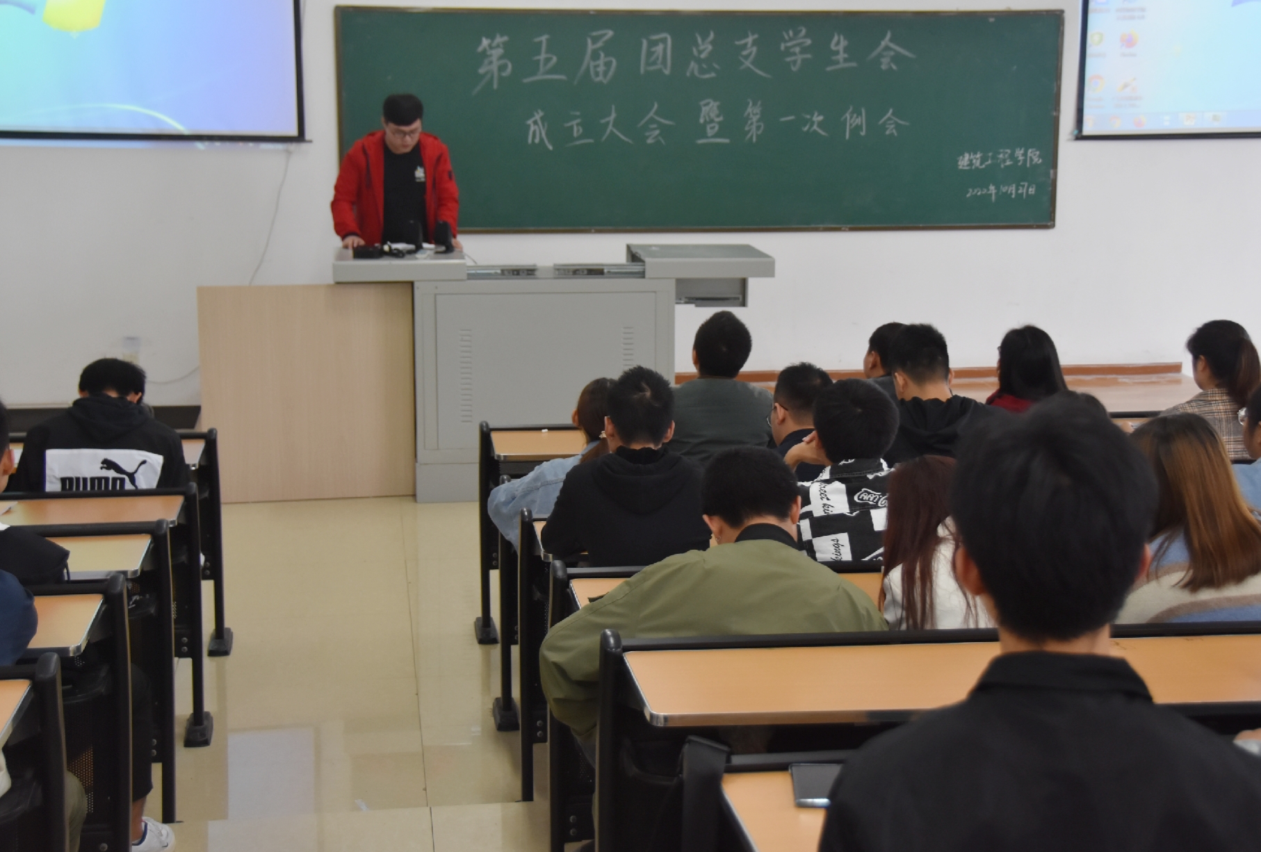 2020年10月27日中午12:30,公司于第三实验大楼531召开了第五届团总支员工会成立大会暨第一次例会。本次会议由团总支副书记顾心雨同学主持,学工办主任蒲科宇、学工办辅导员李佩恩、吴艳萍、康雷及第五届团总支员工会全体成员共同参加了此次会议。
