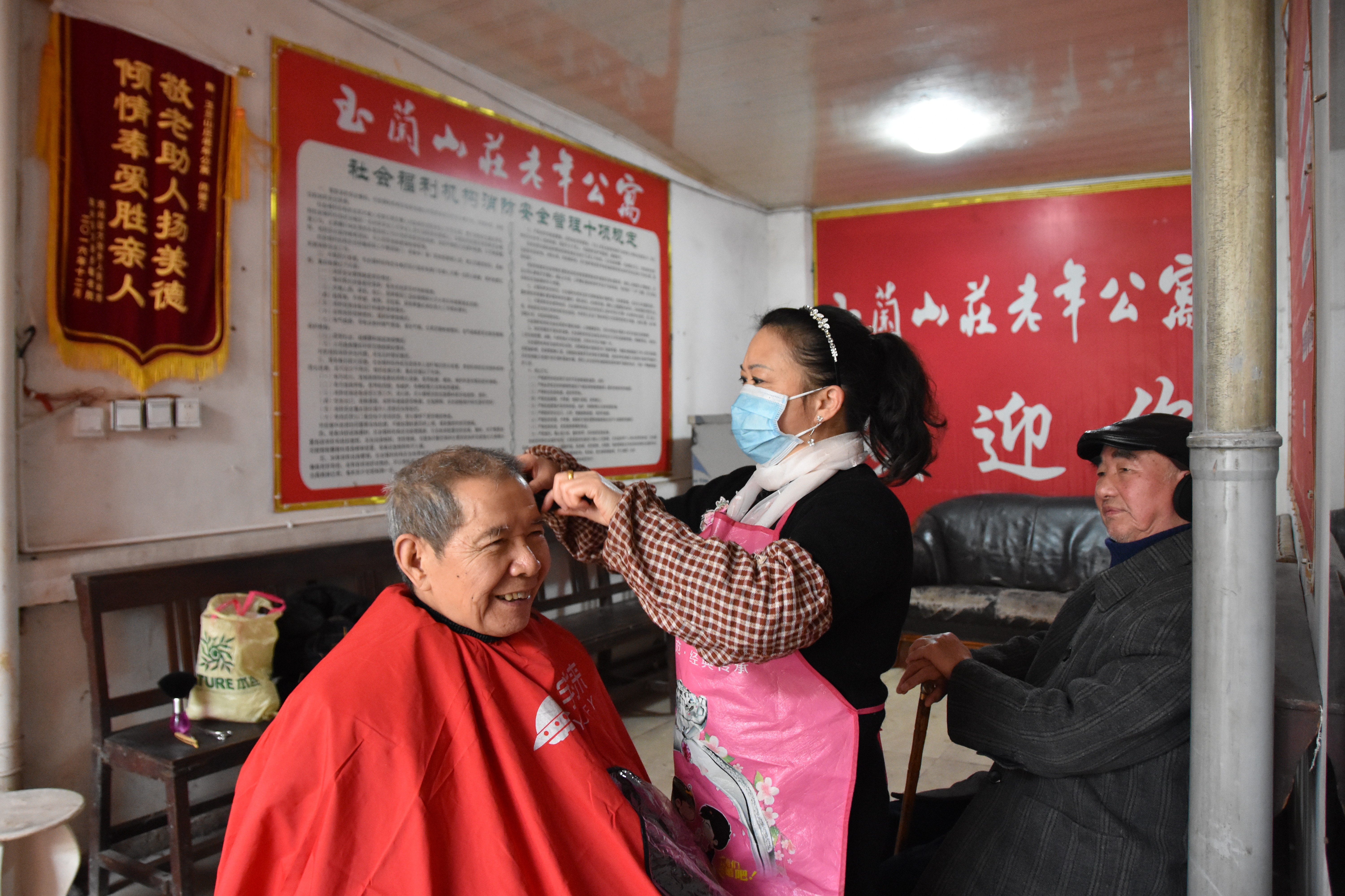 队员们在玉兰山山庄和这里的老人们见面时,他们对于新到来的队员们满是好奇和欢喜,这里的老人们中有退休工程师,退休老教师,还有参与过抗美援朝的老人等。下午,为活跃气氛,让老人们感受温情,队员们向老人们献上了才艺秀。舞蹈,歌曲,都让老人们在这冬天感受到了温暖,而其中最能让老人们感动的是歌曲《我的中国心》,老人们也跟着队员们一起哼唱起来。同时,老人们都融入队员们中,唱起了《南泥湾》。最后,我们得知在玉兰山庄老年公寓中,有一位为老人们默默奉献的人,他不收取老人们的一分钱,为老人们免费修理头发,这一件件小事,反应出一颗美好的心灵。