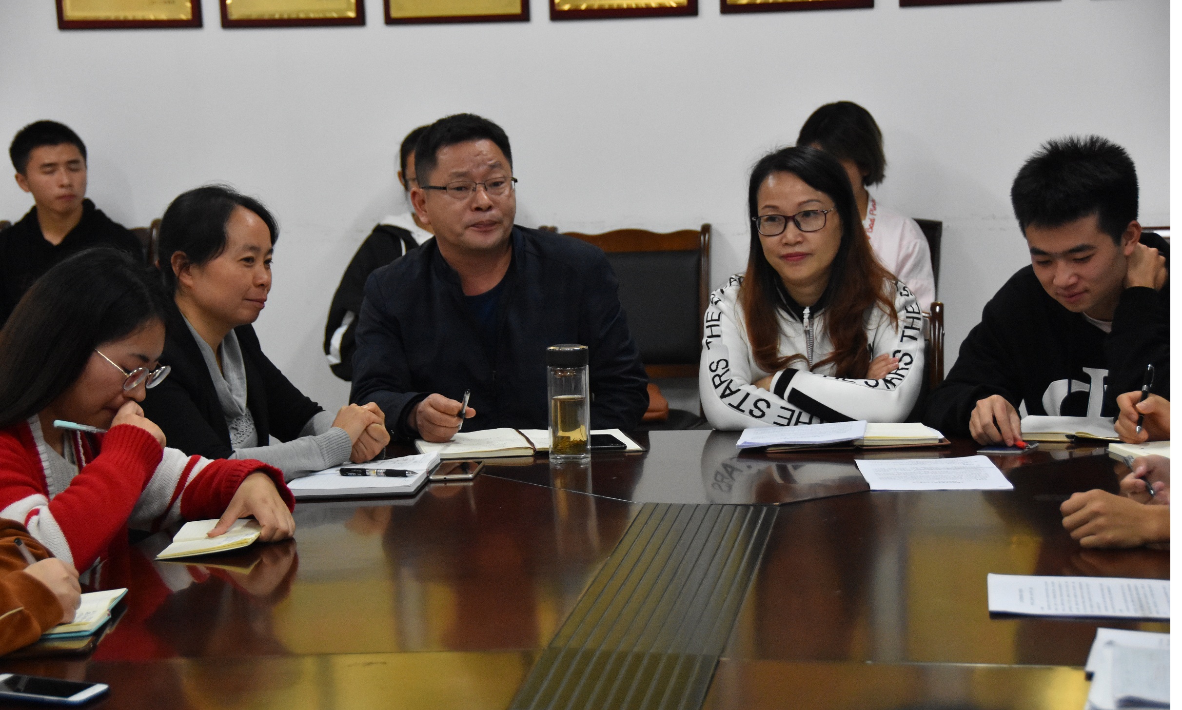 黄平老师从公司层面指出了为营造优良学风,公司多层次多角度的开展了系列工作,并对学习型寝室建设和优秀员工走进新生晚自习教室两项活动征询了同学们的意见,得到了大家的认同。教室、图书馆、宿舍,这些都是同学们学习的重要场所。希望大家处处营造良好学习氛围,促进学习更上一层楼。学风建设要真正落地,必须依靠广大同学的认真努力。同学们需要积极思考,作为学检部成员,作为学习委员,能为公司和班级的学风建设做些什么事情?