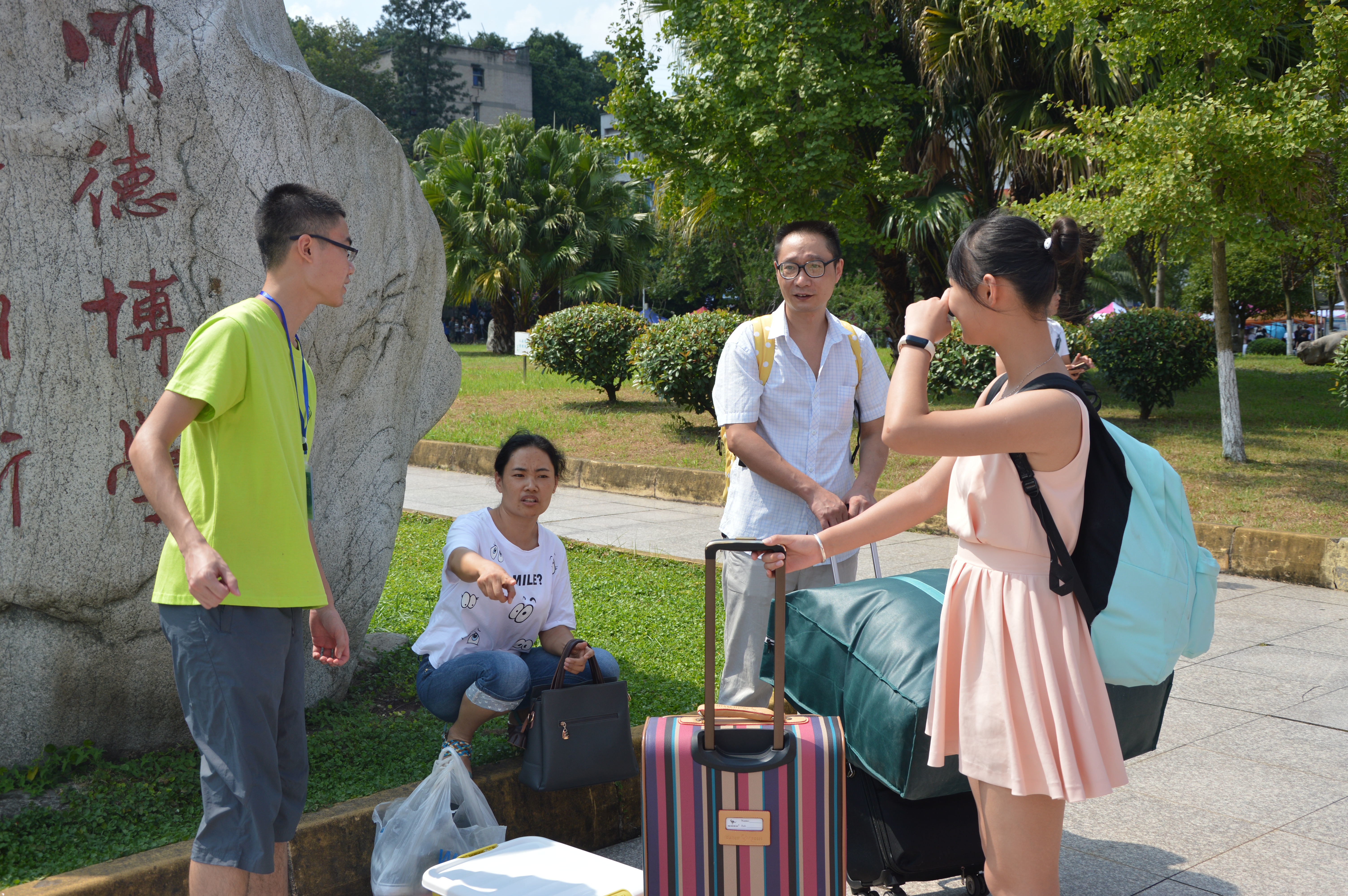 迎新志愿者们一大早就来到公司新生接待处组织各项迎新准备工作。各班大本营分组明确,各类指示牌整齐显眼,使新生与家长清晰明确报到流程,待到中午十二点时迎新工作正式开始,新生陆续来校报道。志愿者们积极主动投入到迎新工作之中,引领新生们来到公司新生接待处,耐心帮助他们完成入学注册并领取生活用品以及入住宿舍等一系列入学流程。在迎新现场,报到新生和指引报到的志愿者们来来往往,比肩接踵,热闹非凡。志愿者们满腔热情,帮助新生搬运行李,并积极介绍校园环境以及生活注意方面,以便新生尽快熟悉校园生活,更好的融入建筑工程公司这个温暖的大家庭。公司新生各班班主任高度重视新生报到工作,不顾烈日炎炎来到入学报到处深入到迎新工作中,与新生及家长进行亲切交谈,使迎新现场温情满满。党总支副书记黄平老师、学工办主任蒲科宇老师在迎新现场回答解决新生报到遇到的问题,全面了解迎新情况。