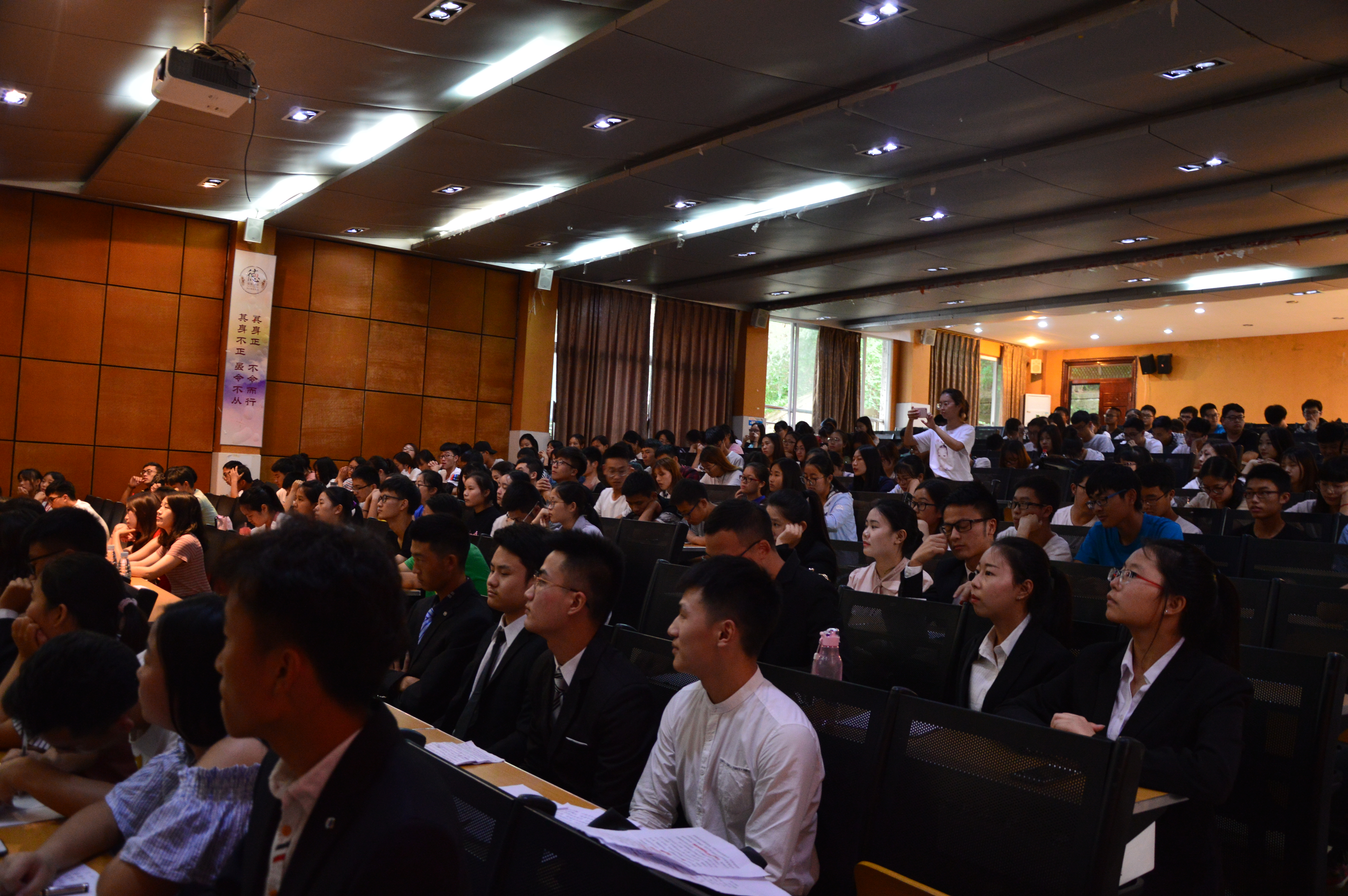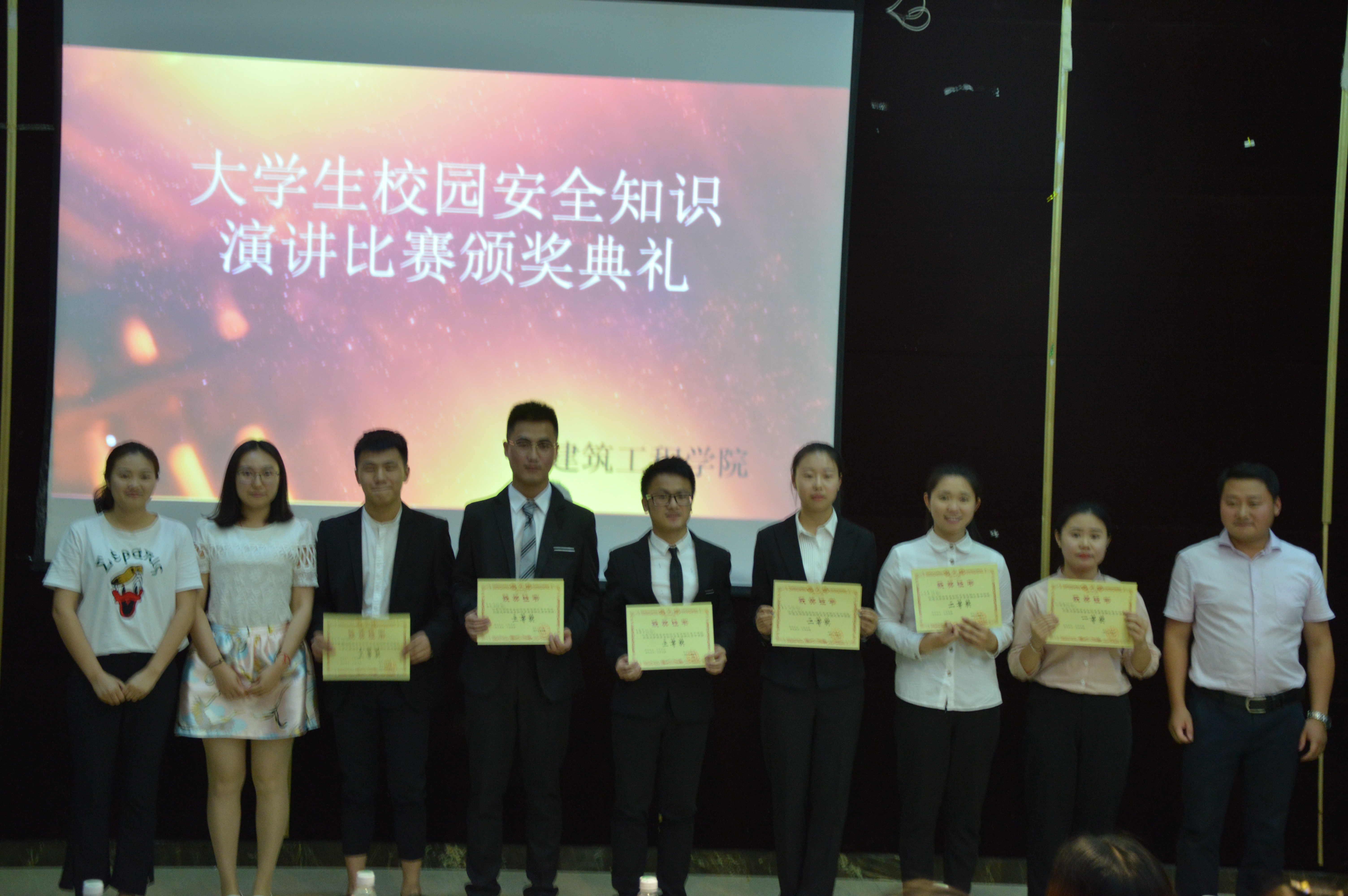 为深入学习宣传贯彻党的十九大精神,进一步优化校园安全建设,加强员工安全教育,营造良好的校园安全氛围。公司于2018年5月27日晚7点在第二学术报告厅举办了老员工校园安全主题演讲比赛。公司学工办主任蒲科宇老师、辅导员李佩恩老师、张娟老师以及院上的嘉宾参加了本次演讲比赛活动。