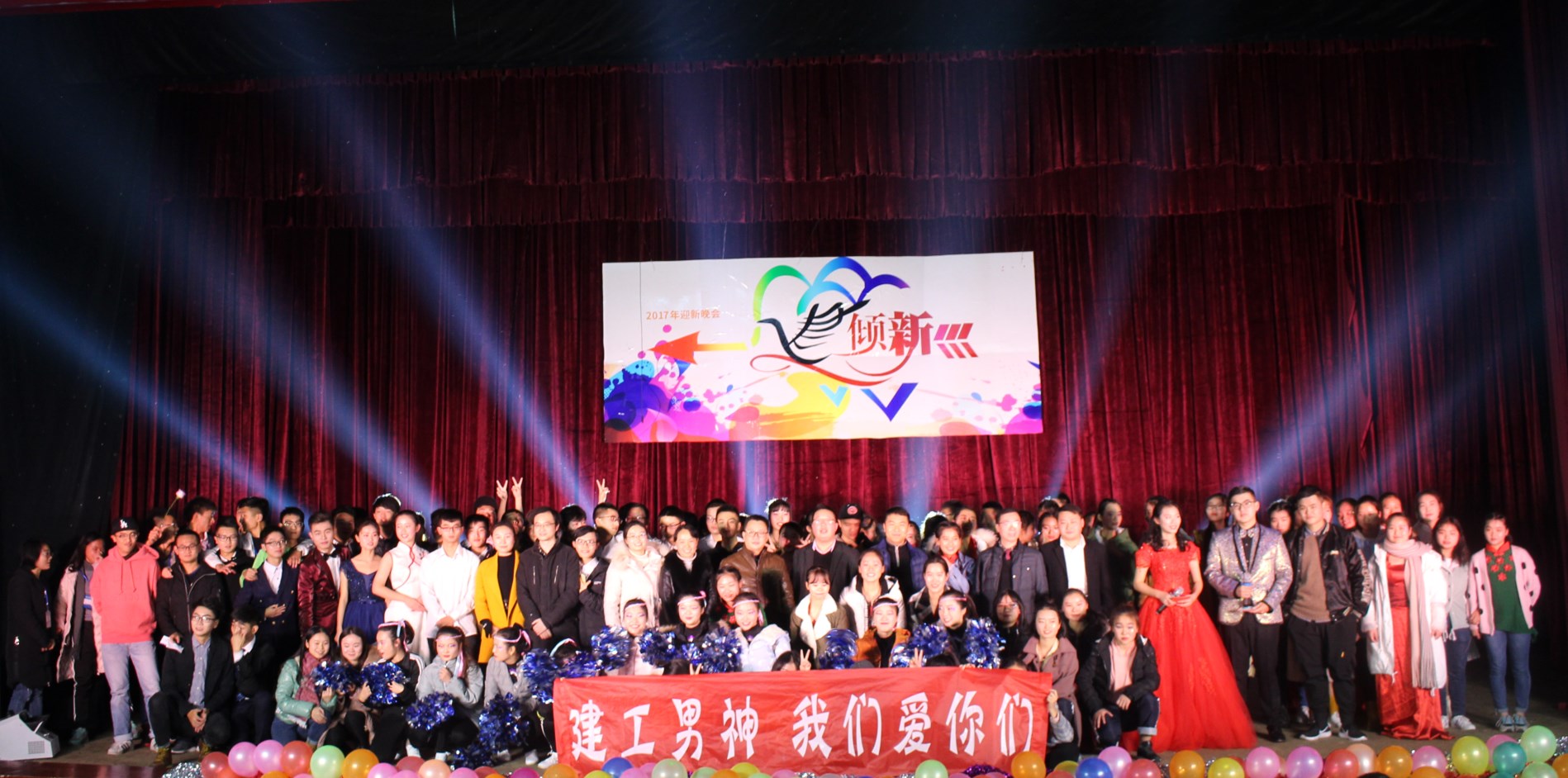 晚会一开始,一场热情奔放的啦啦操展现在观众眼前,伴随着观众热情的高涨,公司“一建倾新”主题晚会正式拉开了帷幕。歌舞、小品、武术、串烧等精彩的节目为观众呈现了丰盛的视听盛宴。合唱《中国之梦》整齐嘹亮,雄浑高昂;小品《拒绝网贷》生动地为同学们展现了网贷的危害及对新生的规劝;独唱《追光者》充满抒情旋律展现了同学们对爱情的向往;群舞《映山红》以一身翠绿的军装诠释了其对革命精神的延续;吉他弹唱《有没有人曾告诉你》风格一转,是对同学们应不忘初心的劝告。情景剧《80 90 00》幽默风趣,引得观众开怀大笑;武术表演《精武忠魂》铿锵有力,赢得观众阵阵欢呼。歌曲串烧以不同歌曲的组合,向观众传播着爱的福音,而由员工会表演的舞蹈串烧,火辣激情,更将晚会引向高潮。晚会不仅有同学们舞动的身姿,更有老师悠扬的歌声,晚会最终以蒲科宇老师一曲经典的《海阔天空》落下帷幕。蒲老师在与同学们积极互动的过程中,表达了其对2017莘莘学子的无限关怀与期待,希望同学们能在大学中找到自我,在未来的人生中海阔天空。