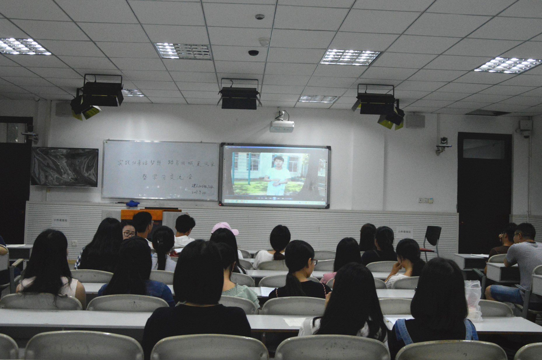 此次主题班会主要以展示暑期“三下乡”活动成果为主。各班实践人员以PPT、视频等方式清楚直观地向大家展示并详细的介绍了暑期社会实践的活动经历与感悟,同学们在辛勤付出的同时也收获了快乐,也正是因为他们的踏实认真,2017年暑期公司及公司“喜迎十九大,青春建新功”三下乡社会实践活动才取得了圆满成功。除此之外,各班以“梦想”为话题展开了讨论。每个人都有梦想,梦想会在我们追梦的道路上为我们提供奋斗目标、前进的动力以及提高我们的精神境界。针对这一话题大一新生在班会上畅谈了自己的梦想以及对大学四年的展望,更是对自己的老员工涯做了详细的规划。