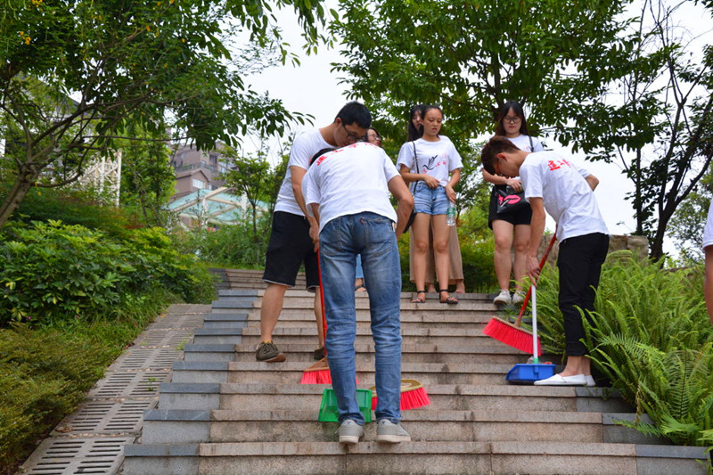 下午1点20,志愿者们准时来到指定地点集合,一同去前往东兴区清溪湿地公园,进行第一天的“三下乡”社会实践活动。按照事先分配好的队伍,有几位员工干部担任组长,志愿者们分别拿着扫帚、簸箕、垃圾麻袋,在清溪湿地公园的街道上开始卖力的行动起来。过了一会儿,志愿者们的手臂、背上、额头上,全都是颗颗珍珠大的汗水,但是他们没有喊苦也没有喊累,反而是一直用欢声笑语来挡住这片火辣辣的阳光。在他们的一番努力之后,整个清溪湿地公园仿佛也变得更加干净,更加令人赏心悦目。