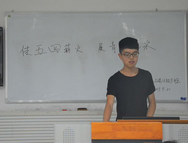 此次主题班会,各班形式多样。以PPT,视频等方式清楚地向大家介绍了五四运动的历史由来。在观看视频《建国大业》的片段时,五四那段历史中青年老员工们的爱国情怀让我们的同学们产生了深深的敬意。同学们还唱了团歌《光荣啊,中国共青团》。正如歌词所言,我们是五月的花海,用青春拥抱时代;我们是初升的太阳,用生命点燃未来."五四"的火炬,唤起了民族的觉醒.壮丽的事业,激励着我们继往开来.