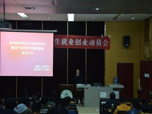 公司于2016年11月30日晚七点在第二学术报告厅召开2016届毕业生工作总结大会暨2017届毕业生就业创业动员大会,出席此次会议的有经理王照安、党总支书记向泾源、学工办主任蒲科宇、学工办张娟及公司毕业班级。