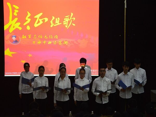 班会伊始,在主持人的引导下,全体人员通过视频追忆红军长征的历程。随后是秦朝霞带来的演讲,向革命志士致以崇高敬意。接着是寓意深远又幽默风趣的小品《四代同台唱红歌》。然后是对红军长征的礼赞——朗诵《长征组歌》。最后是情感炽热昂扬向上的《红歌串烧》。最后,组织部部长张斌对此次主题班会进行了点评。他表示能够看出各班同学对此次班会的用心准备,有优点的同时也有不足之处,并表示希望16级各班能够吸取此次班会的优点。班会结束后,学工办张娟老师表示对此次班会内容以及形式十分满意,但是也希望同学们日后能够更进一步。