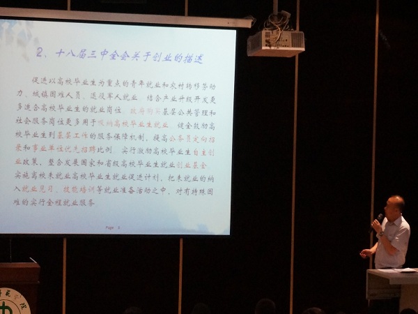 讲座由内江市就业服务管理局李奕老师主持,在讲座中,李老师分别讲述了现今就业形势政策,就业方法以及就业建议,并举了许多就业实例对同学们加