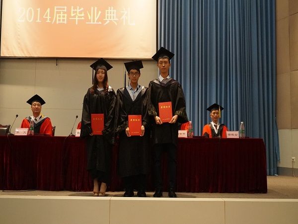 早9点整,毕业典礼正式开始。在全体起立奏唱国歌后,副经理张文与薛世华相继宣读了公司2014届获学士学位毕业生名单与省优秀老员工毕业名单。党总支书记黎昌金为省优秀大学毕业生颁发了证书。而后,在优美的音乐声中,经理蔡达峰教授为获的学士学位的代表们授予了学位,毕业生们与蔡经理微笑握手,真挚的鞠躬致敬并与蔡经理合影留念。接下来则分别由毕业生代表10级2班的卢军同学与在校生代表12级4班蔡鑫同学进行了发言。最后,在蔡经理幽默而寓意深刻的话语中,同学们收获颇多,对于即将踏入社会的他们来说,有着极其重要的启示与指引。