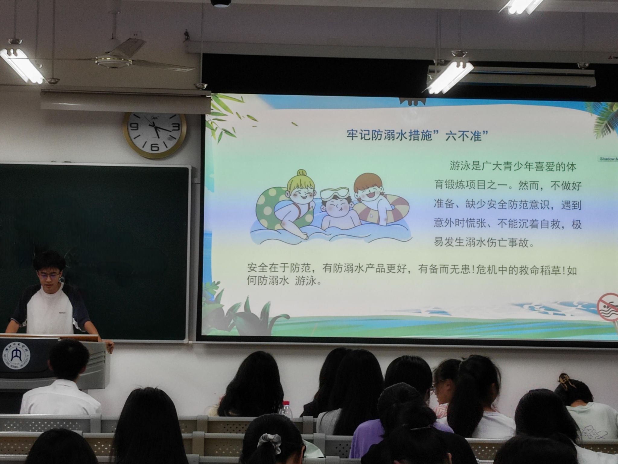 班会上,首先由班长通过视频案例向同学们展示了溺水事故的惨痛后果,引发了同学们的深刻反思。接着,班长对防溺水安全知识进行了宣传,如突遇溺水时的自救措施、施救方法以及重点防范区域、重点对象、重点时段等,呼吁同学们提高防溺水安全防范意识,筑牢安全防线。