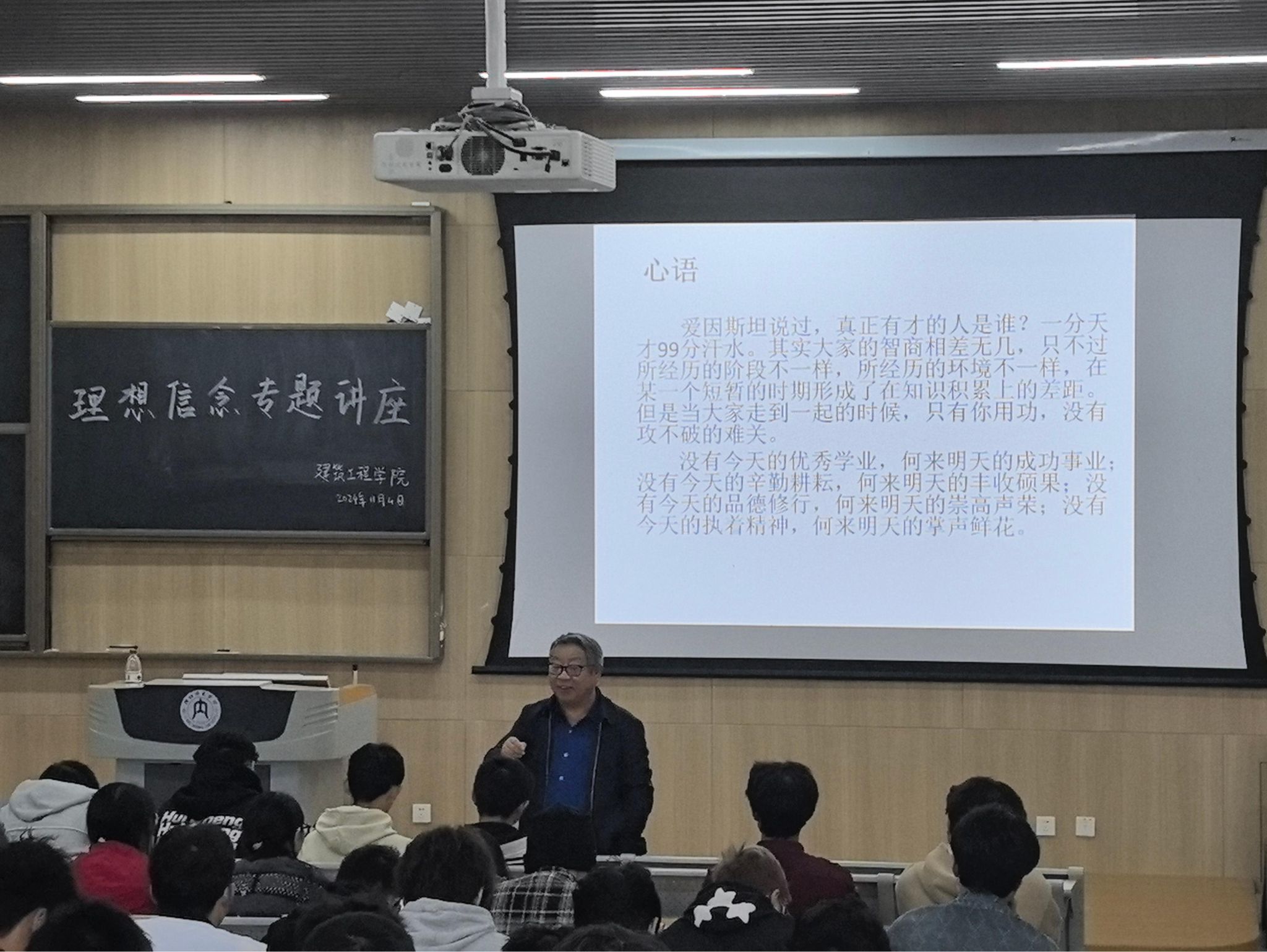 为引导同学们树立崇高理想,坚定前行信念,建筑工程公司于11月4日在明德楼B负107成功举办了一场以“坚定理想信念,扎实专业基础”为主题的专题讲座,此次讲座由彭家寅教授主讲,公司2024级新生参加。