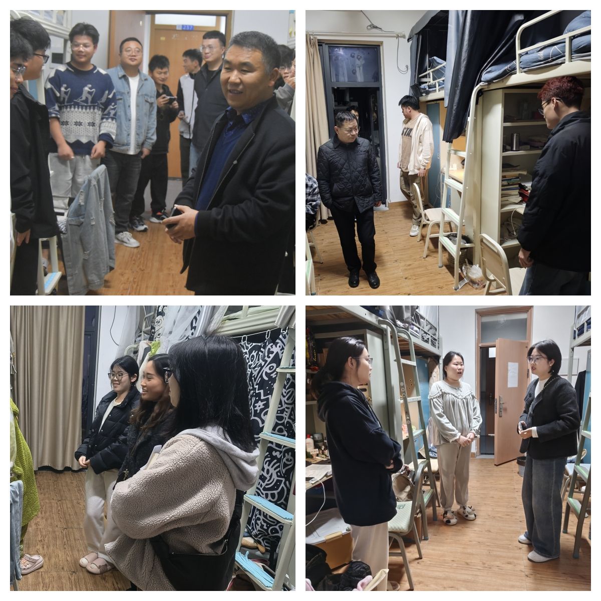 为进一步提升员工的安全意识,确保寝室、校园环境安全有序。11月17日晚,公司党委书记王照安、经理胡利超、党委副书记罗冬丽及其他联系公司团支部领导带领学工办辅导员及各班班主任共同走访了公司全体员工寝室。