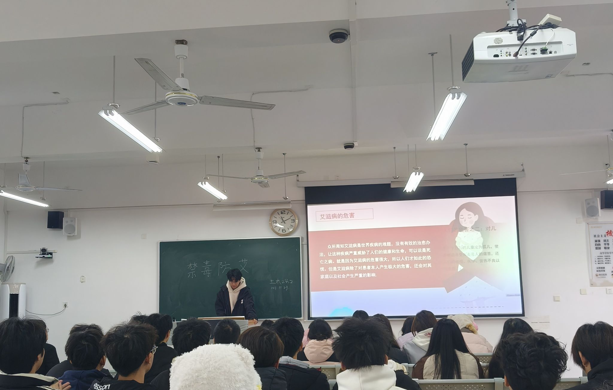为提高同学们的禁毒防艾意识,营造健康和谐的校园环境,值第37个“世界艾滋病日”之际,建筑工程公司于2024年11月29日在各班召开“禁毒防艾”主题班会活动。