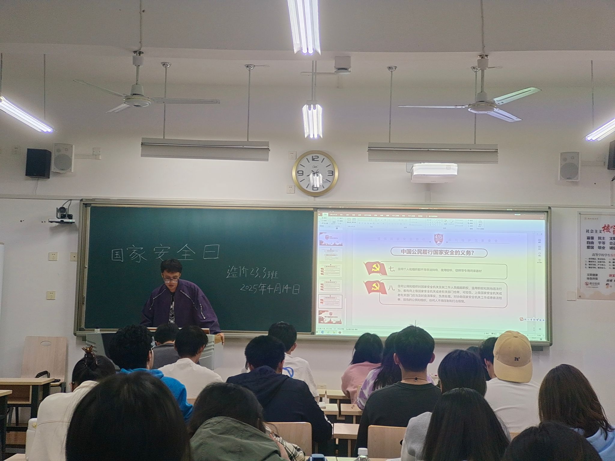 主题班会上,首先由班长借助生动案例和视频资料,从国家政权、主权等核心要素讲起,阐释总体国家安全观的五大要素、五个统筹以及五对关系。随后,宣传委员向同学们介绍了全民国家安全教育日的背景与意义,并宣传了国家安全相关举报电话:12339,号召同学们以实际行动维护国家安全。