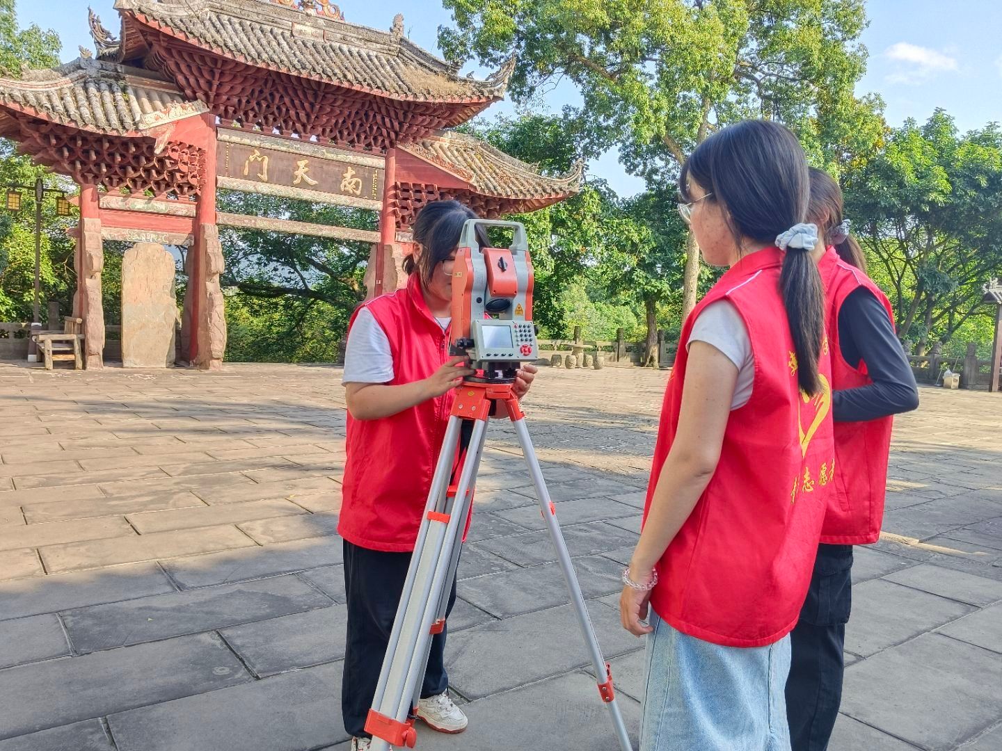 随后,队伍去到了真武山古建筑群,对这片融合了明清建筑风格与地域特色的古建筑群进行了细致的实地考察与建筑美学赏析。大家围聚在一起,观摩这些古建筑群的布局、结构、装饰等精湛工艺,感受其中蕴含的深厚历史文化底蕴与古代工匠智慧。除此之外,队员们还进行了专业的全站仪四等水准测量实践,这一过程将现代测绘技术与古建筑保护需求相结合,有效锻炼了同学们的实践动手能力和数据获悉分析能力。