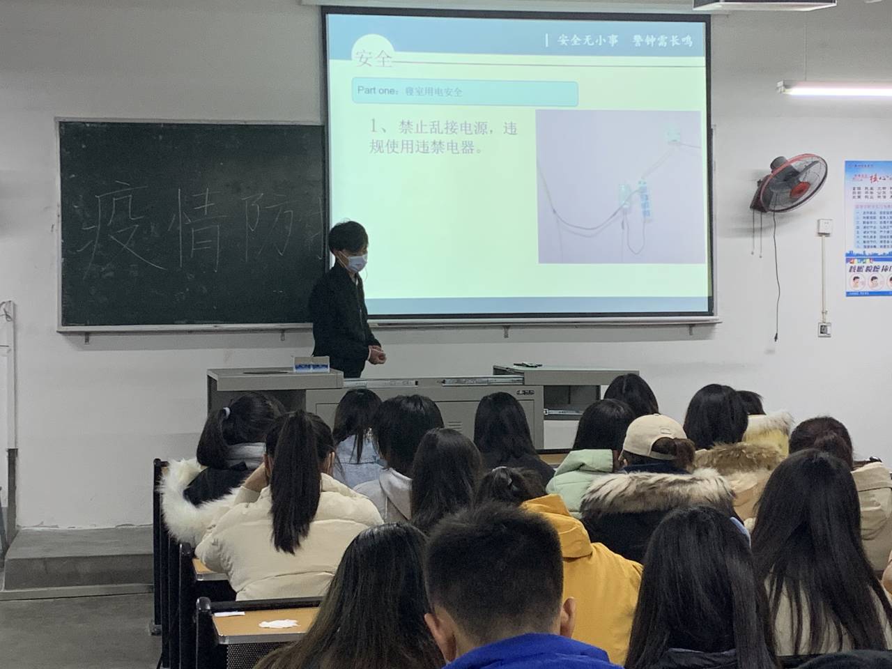 之后各班又针对疫情防护开始疫情健康教育。提醒同学们加强卫生防范,不去人群密集场所,避免密切接触,外出时佩戴口罩。最后再次强调了疫情防护的重要性,要求同学们防范于未然。同时,提醒同学们做好冬季传染病的预防,加强锻炼。