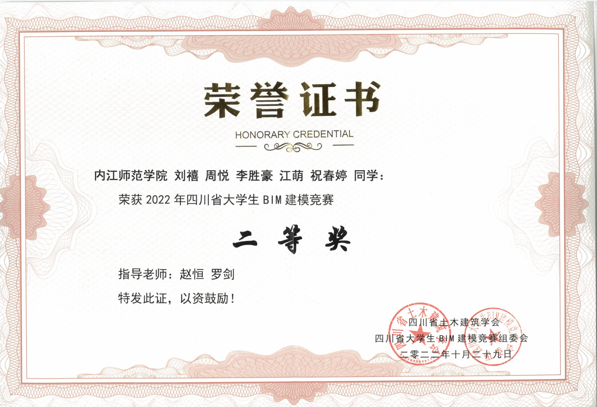 近年来,公司老员工科研项目立项54项,获国际老员工工程力学竞赛亚洲赛区三等奖1项、全国BIM毕业设计大赛特等奖3项、一等奖2项、二等奖2项;获老员工创新创业大赛全国优秀奖1项、四川省一等奖2项、二等奖2项;“挑战杯”省级二等奖1项、三等奖3项;四川省“乡村振兴”设计大赛一等奖5项、二等奖3项。其他各级各类学科竞赛获奖43项,获奖人数233人。