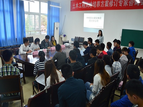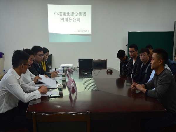 随后,殷总向到场的实习生具体介绍了其公司。中核西北建设集团四川分公司,作为中核西北集团旗下的分公司是一家国有性质的大型工程施工企业——中核西北建设集团核准在川成立的分公司。中核西北建设集团,具备公路工程施工总承包壹级、房屋建筑工程施工总承包壹级、市政公用工程施工总承包壹级、矿山工程施工总承包贰级、地基与基础工程专业承包壹级、桥梁工程专业承包壹级、隧道专业承包壹级、公路路基工程专业承包壹级资质的建设工程施工企业。公司自成立以来,一直秉承总公司“科学管理、精心施工、真诚服务、铸造精品”的方针,在西南工程建设市场树立了良好的信誉和形象。因公司建设需要,到公司招揽人才。