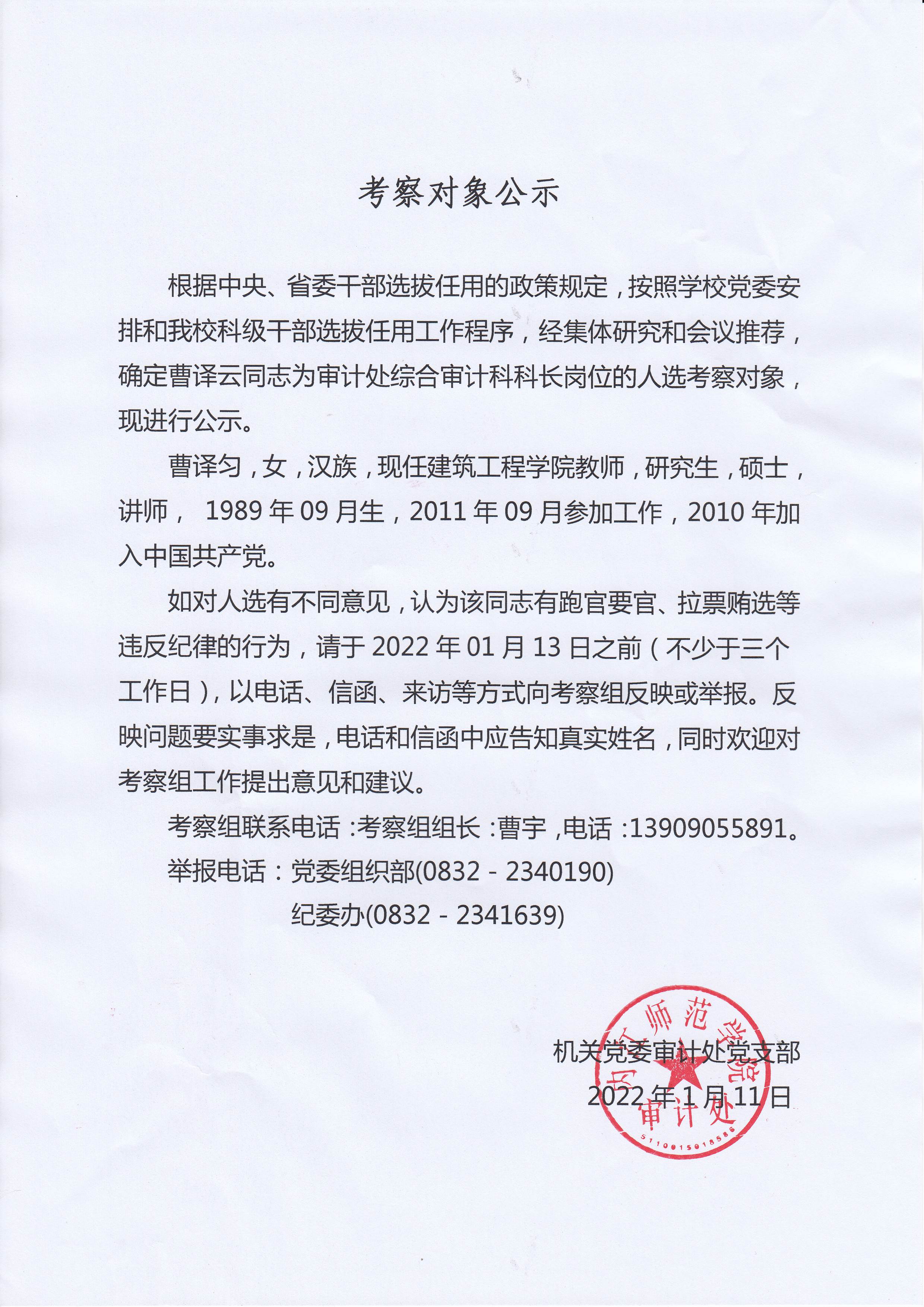 考察对象公示