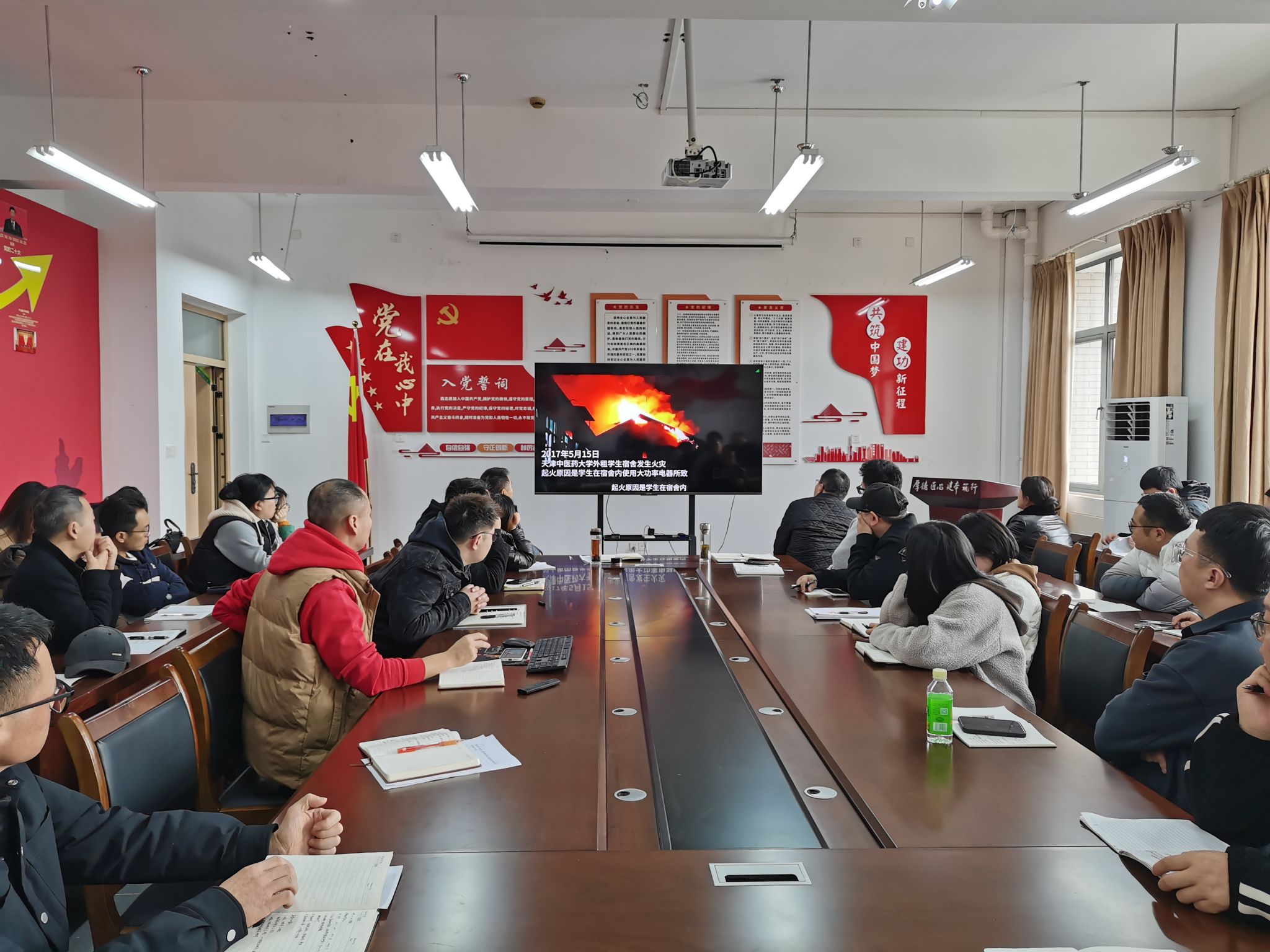 会上,赵瑞刚从校园消防工作、突出风险点、消防安全隐患、消防安全职责等方面讲述了消防安全的重要性,结合实际案例列举了消防器材、用水、用电、以及各类场所存在的安全隐患。随后,播放了火灾案例视频和消防安全小知识,通过警示教育片向教职工展示火灾的危害和预防火灾的重要性,进一步加强了教职工的消防安全意识。