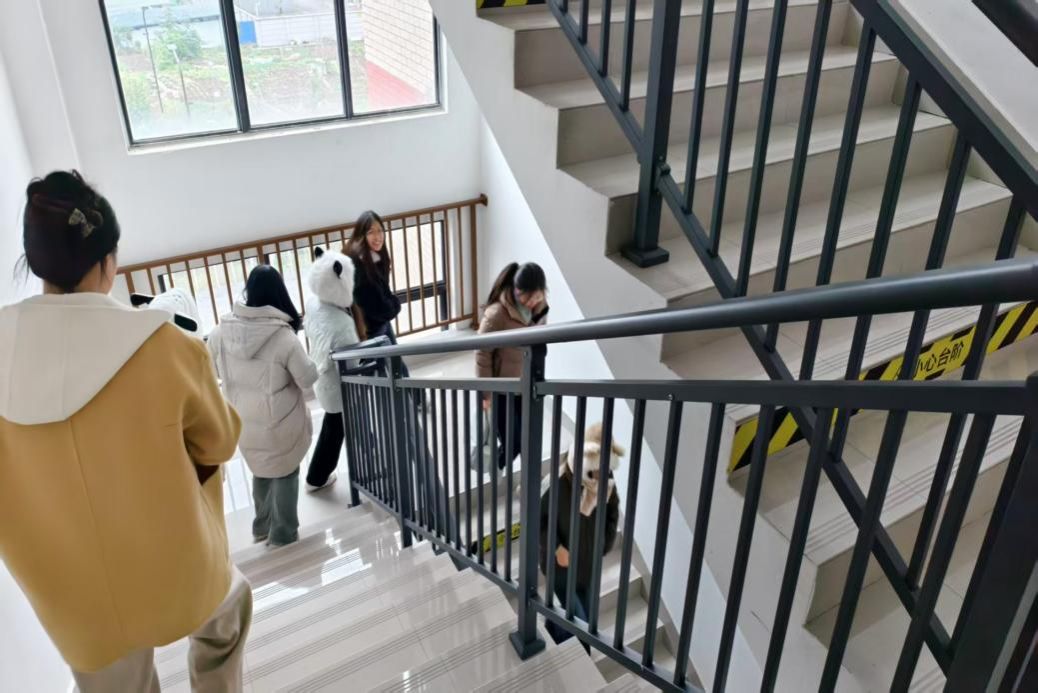 “10时,公司办公场所发生火情,火灾警报响起”。随即全体师生迅速撤出所在场所,弯腰掩鼻,依照安全撤离指示标识分别从各疏散楼梯快速有序撤离至应急疏散点。